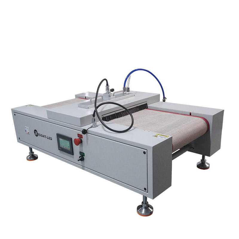 機(jī)傳送帶及UVLED開始工作,當(dāng)后端傳感器感應(yīng)到產(chǎn)品后,傳送帶及UVLED停止