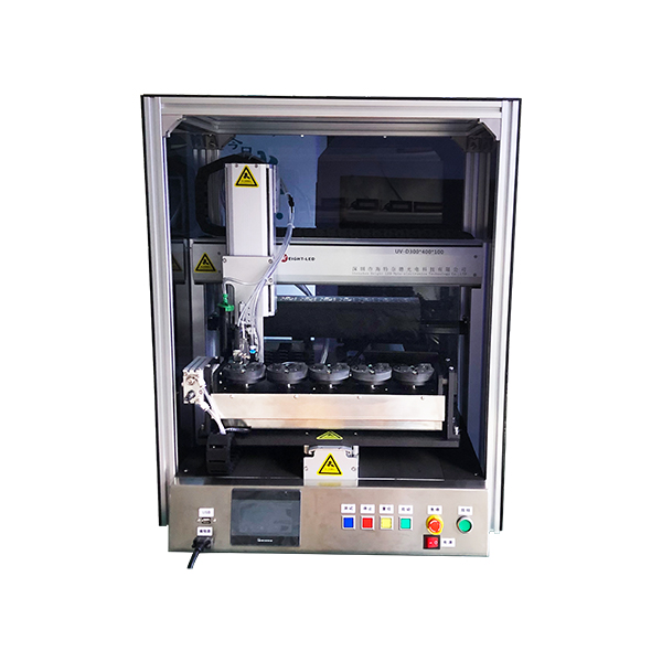 This is a high-performance automatic dispensing and curing all-in-one machine with built-in UVLED curing light source, which is on and off, does not contain mercury, and does not generate ozone. It has the characteristics of safety and environmental protection, low heat generation, super power saving, and long life. The size and fixture of the light source can be customized according to the customer\'s product.